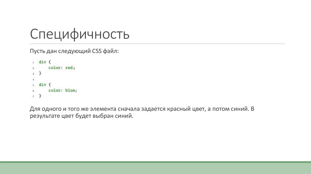 СпецифичностьПусть дан следующий CSS файл: