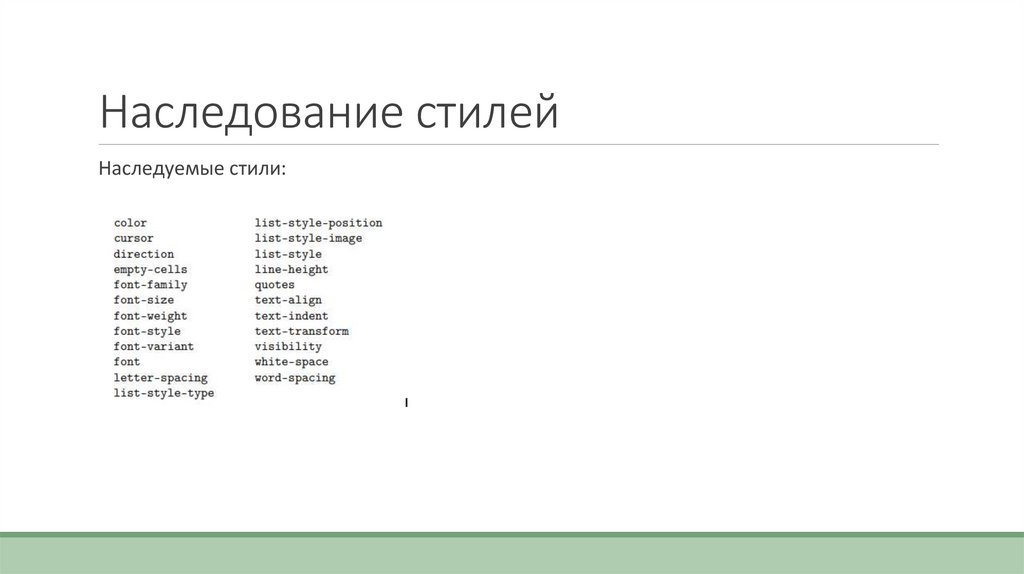 Наследование стилейНаследуемые стили: