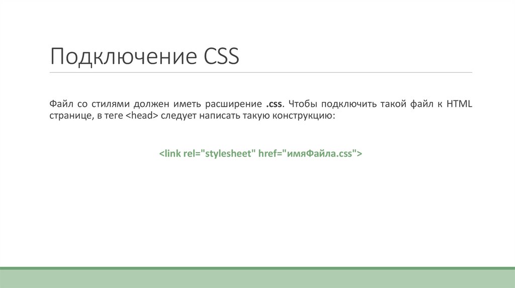 Подключение CSSФайл со стилями должен иметь расширение .css. Чтобы подключить такой файл к HTML