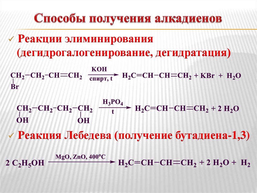 Реакции элиминирования(дегидрогалогенирование, дегидратация)