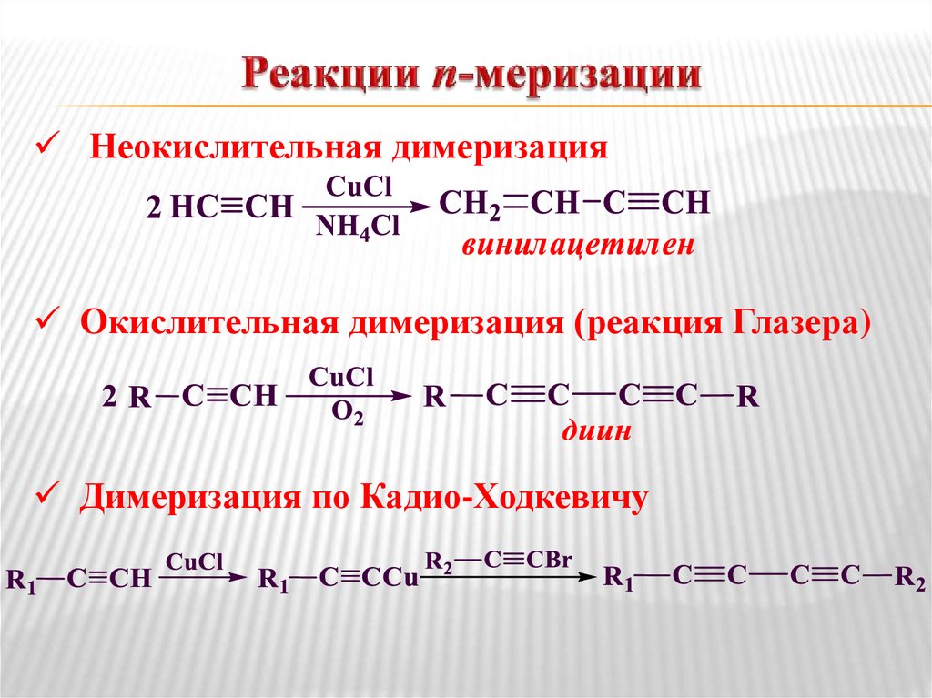 Неокислительная димеризацияОкислительная димеризация (реакция Глазера)