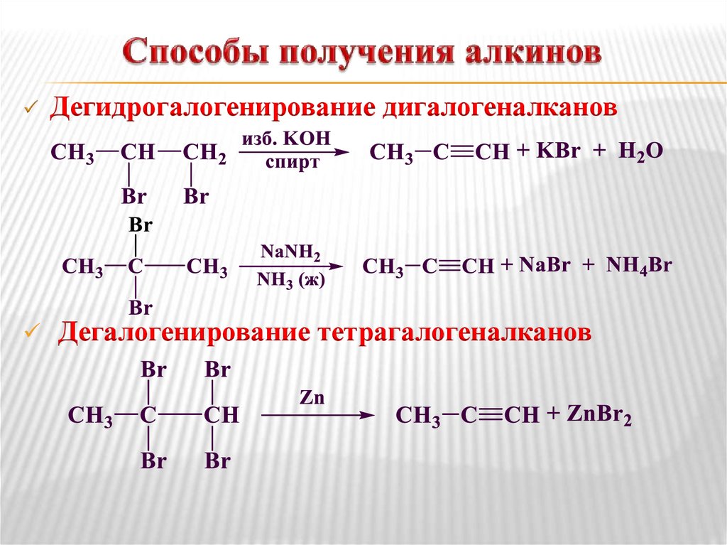Дегидрогалогенирование дигалогеналкановДегалогенирование тетрагалогеналканов