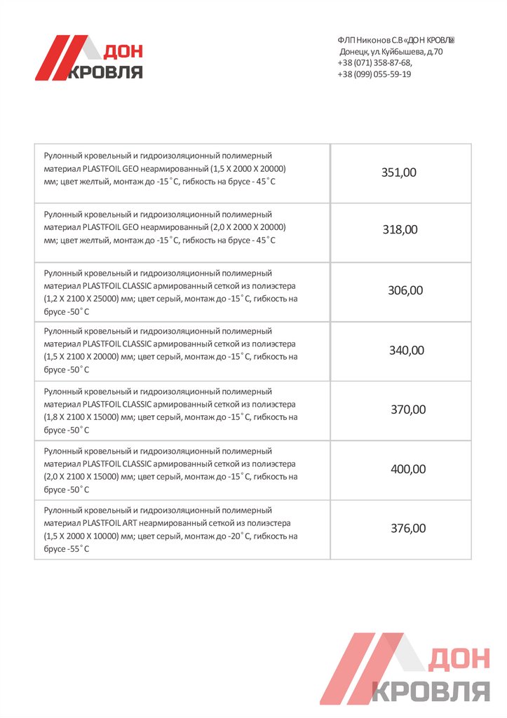 Прайс-лист на ПВХ мембрану PLASTFOIL®