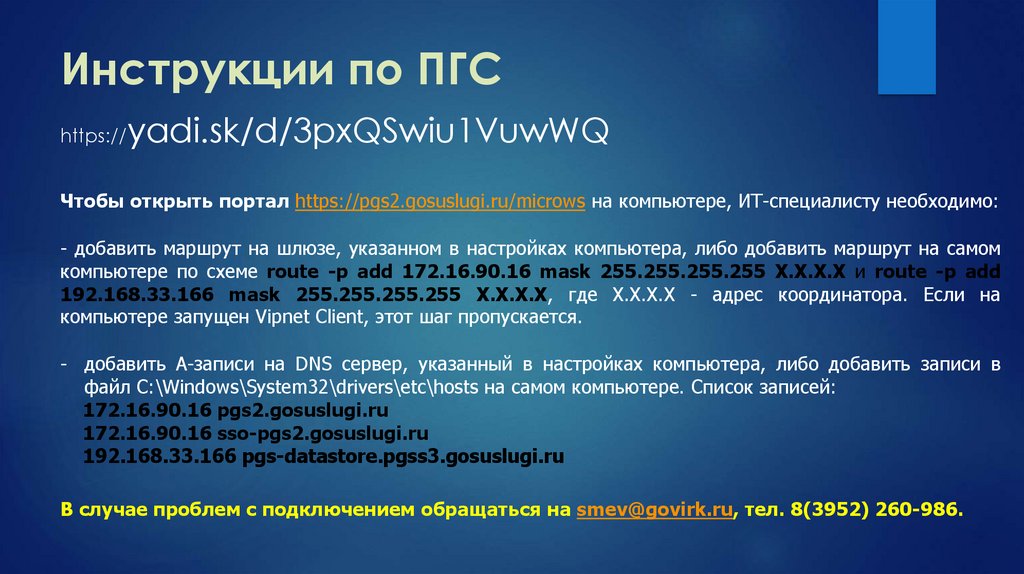 Чтобы открыть портал https://pgs2.gosuslugi.ru/microws на компьютере, ИТ-специалисту необходимо: