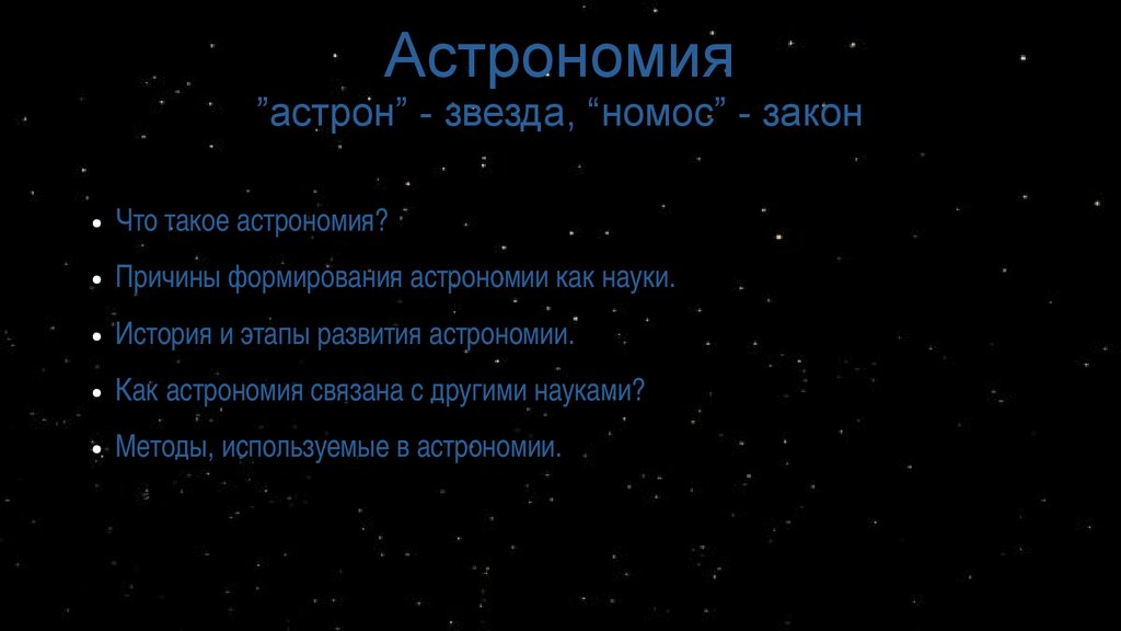 Астрономия изучает движение, строение, происхождение и развитие небесныхтел и их систем.
