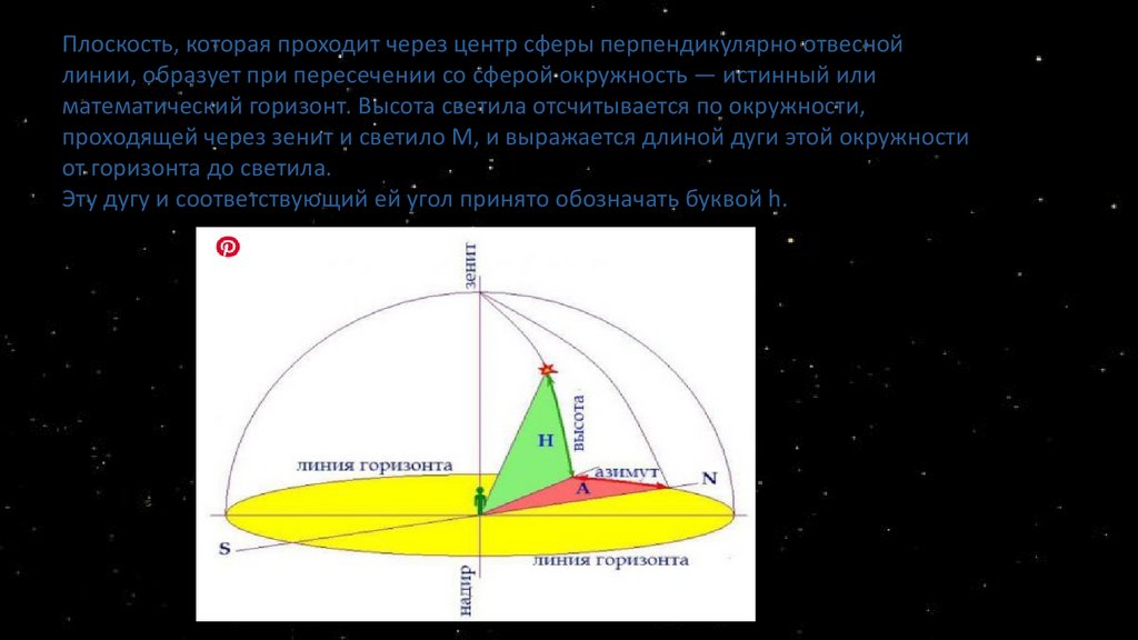 Плоскость, которая проходит через центр сферы перпендикулярно отвеснойлинии, образует при пересечении со сферой окружность — истинный или