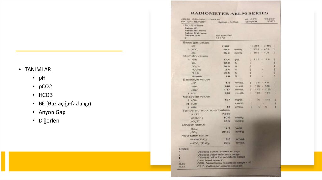 Kan Gazı Yorumlama• Diğerleri