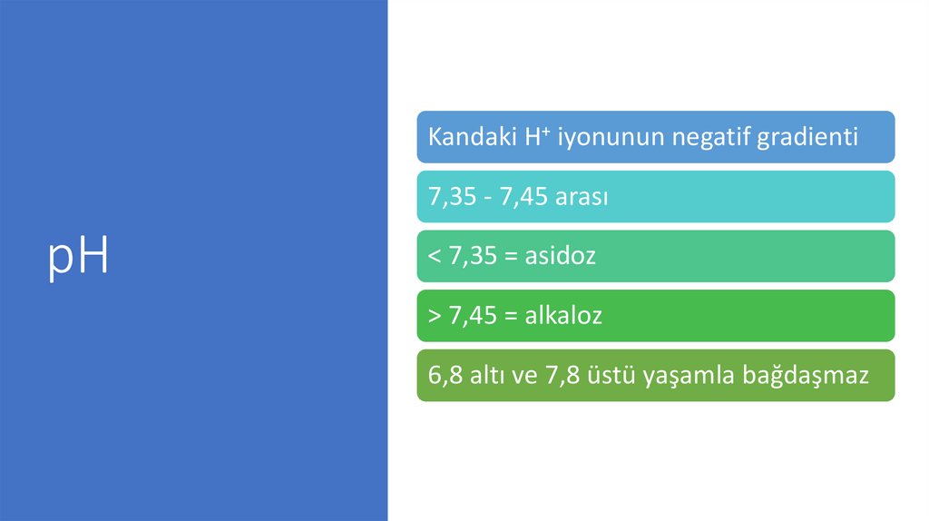 Kandaki H+ iyonunun negatif gradienti7,35 - 7,45 arası