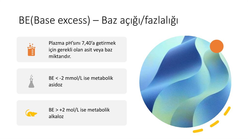 BE(Base excess) – Baz açığı/fazlalığıPlazma pH’sını 7,40’a getirmek