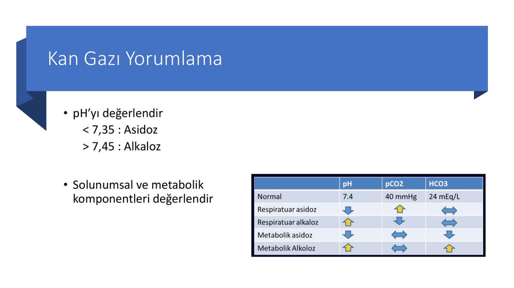 Kan Gazı Yorumlama• pH’yı değerlendir