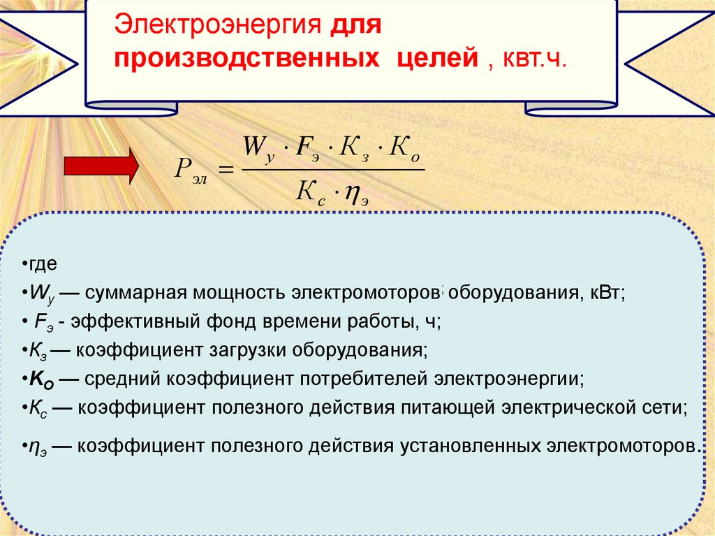 •ηэ — коэффициент полезного действия установленных электромоторов.