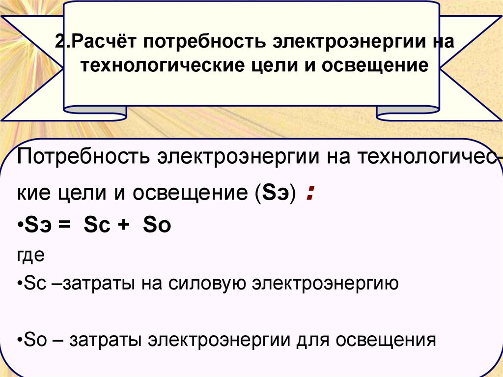 2.Расчёт потребность электроэнергии натехнологические цели и освещение