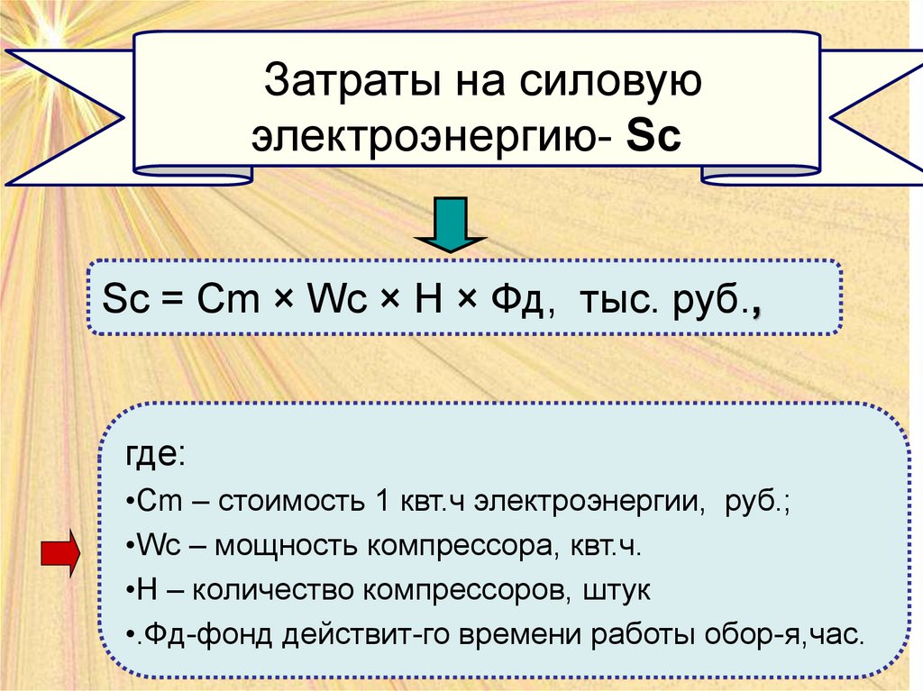 •Sc –затраты на силовую электроэнергию