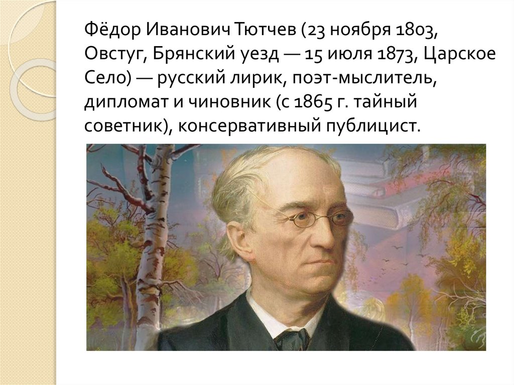 Фёдор Иванович Тютчев (23 ноября 1803,Овстуг, Брянский уезд — 15 июля 1873, Царское