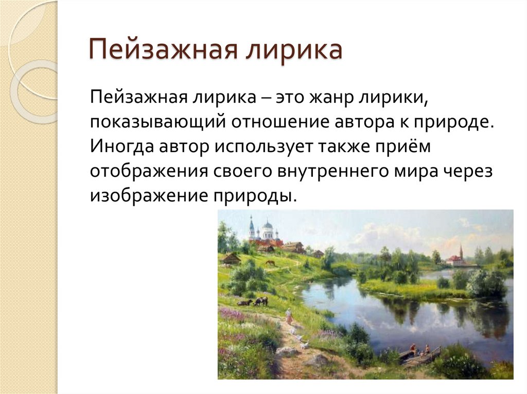 Пейзажная лирикаПейзажная лирика – это жанр лирики,
