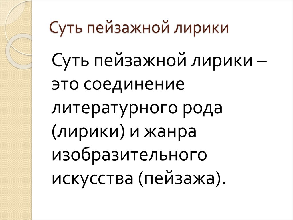Суть пейзажной лирикиСуть пейзажной лирики –