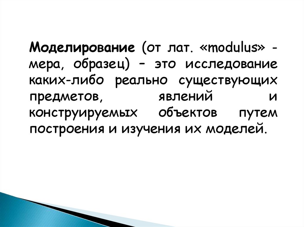 Моделирование (от лат. «modulus» мера, образец) – это исследованиекаких-либо реально существующих