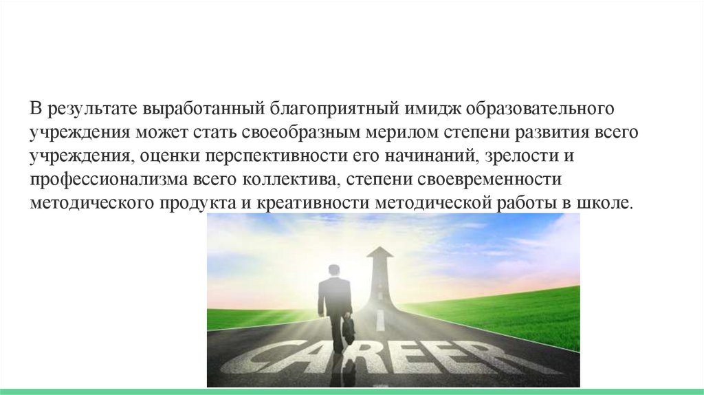 В результате выработанный благоприятный имидж образовательногоучреждения может стать своеобразным мерилом степени развития всего