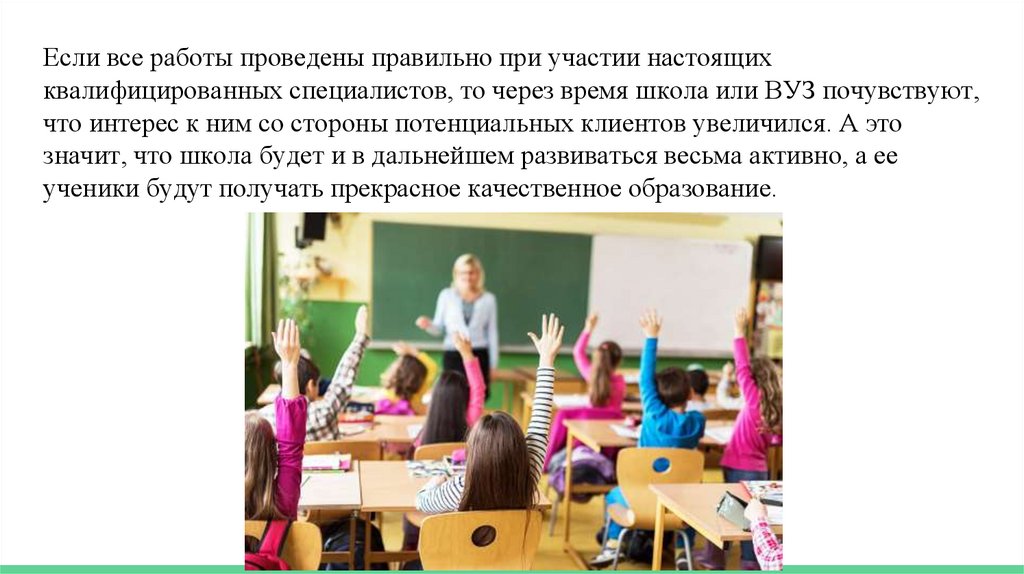 Если все работы проведены правильно при участии настоящихквалифицированных специалистов, то через время школа или ВУЗ почувствуют,