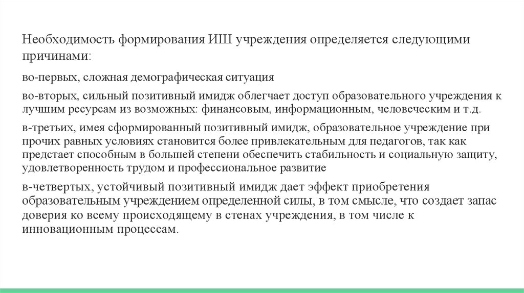во-вторых, сильный позитивный имидж облегчает доступ образовательного учреждения к