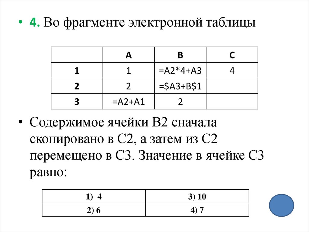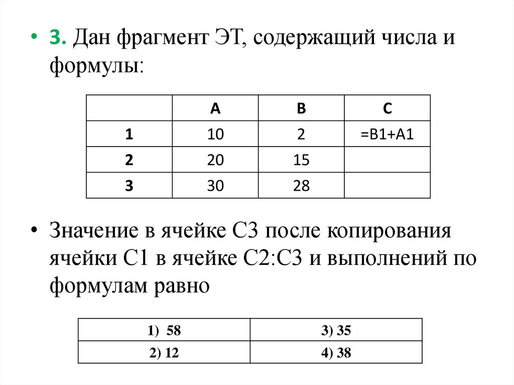 • 3. Дан фрагмент ЭТ, содержащий числа иформулы: