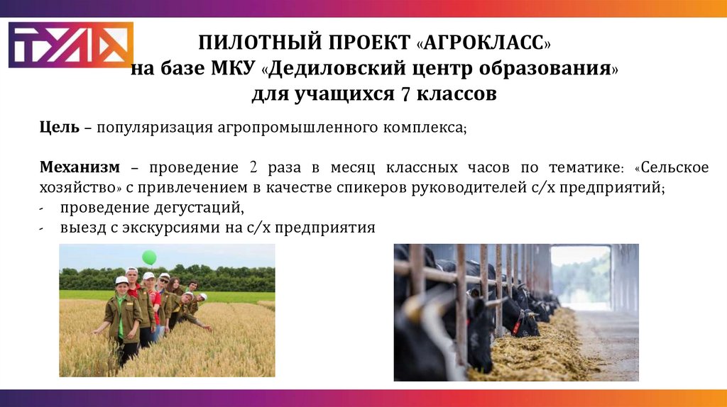 ПИЛОТНЫЙ ПРОЕКТ «АГРОКЛАСС»на базе МКУ «Дедиловский центр образования»