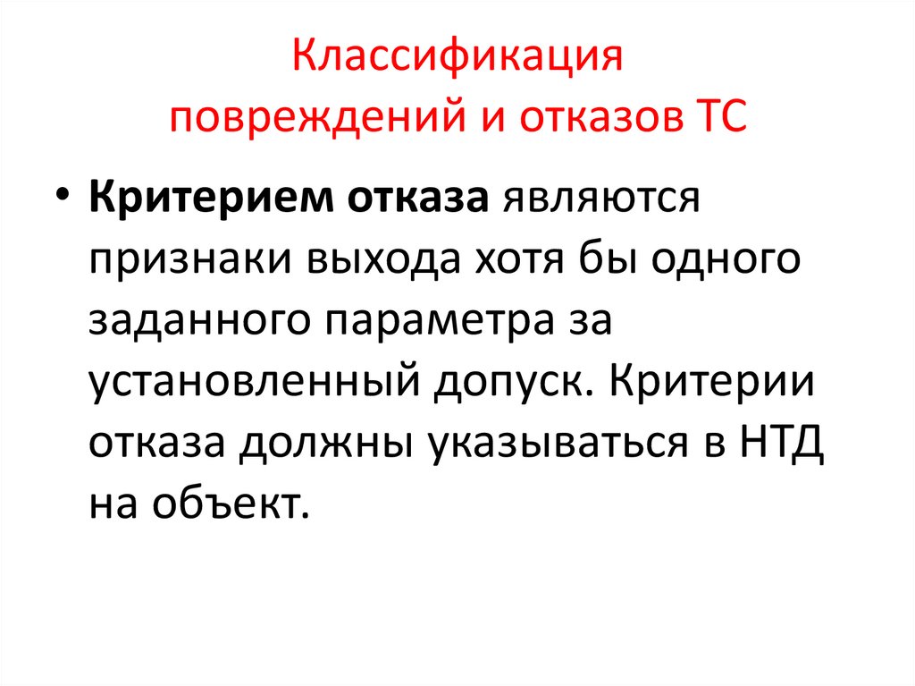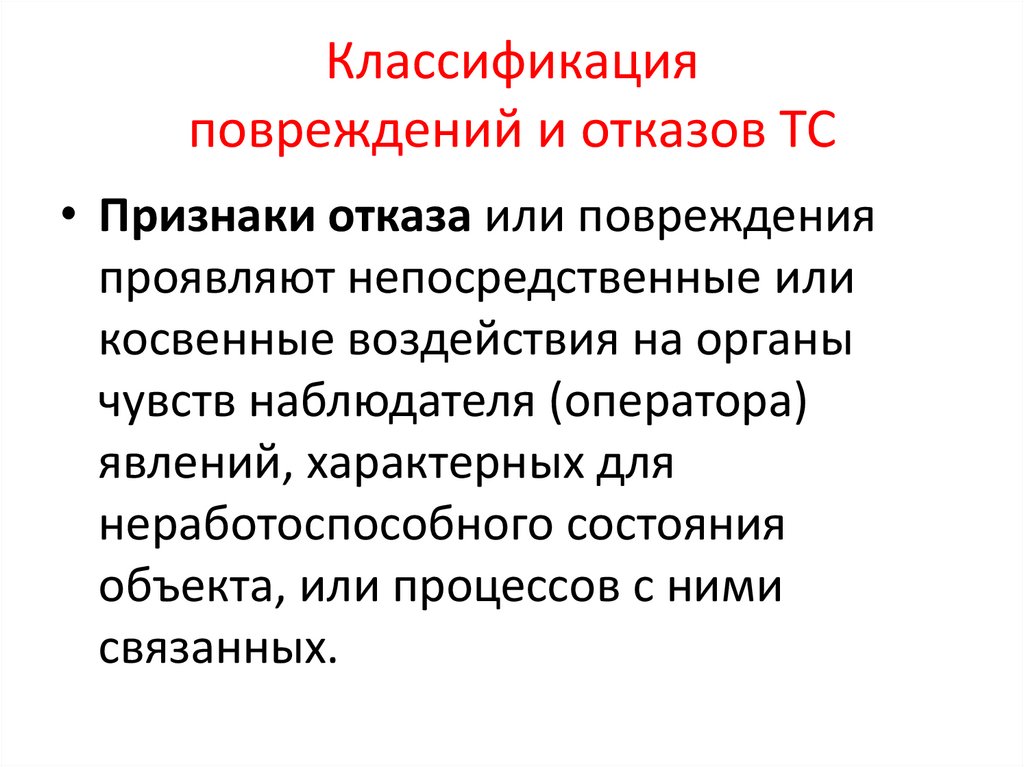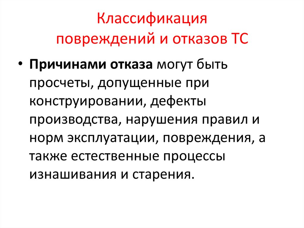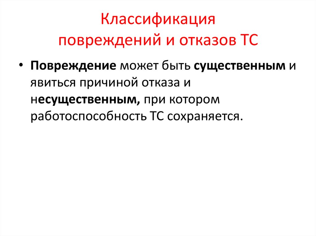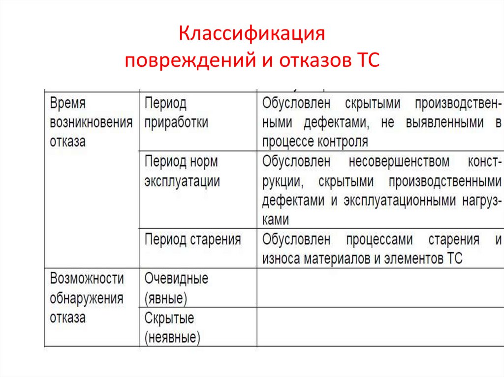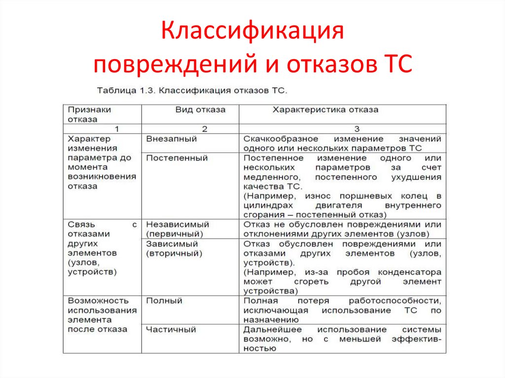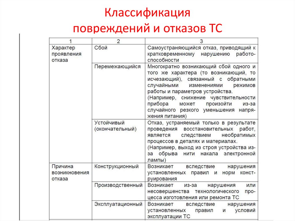 Классификация повреждений и отказов ТС