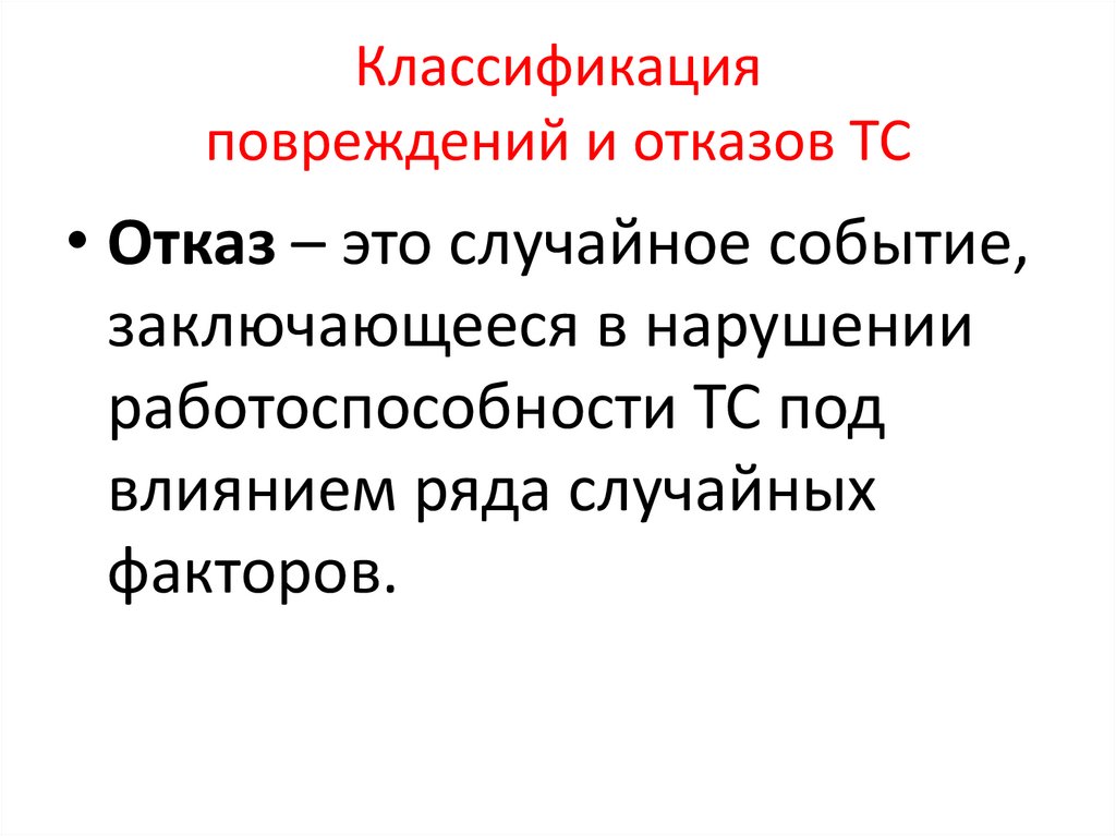 • Отказ – это случайное событие,