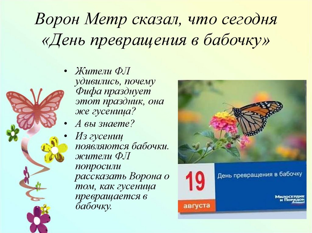Ворон Метр сказал, что сегодня«День превращения в бабочку»