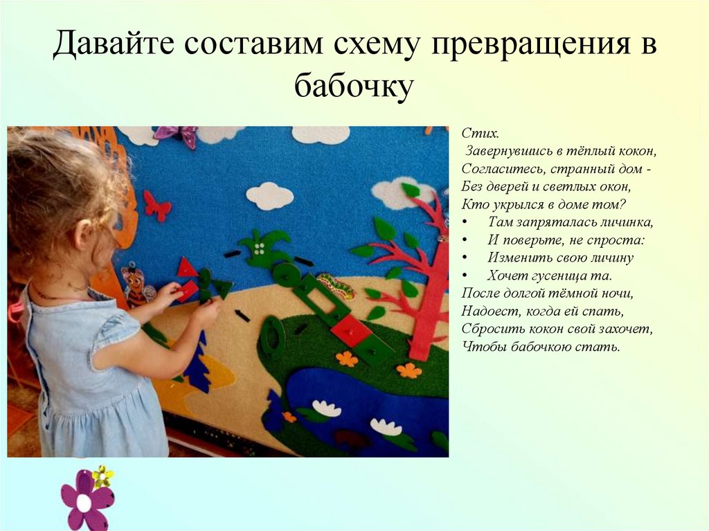 полетела. (Воспитатель имитирует полет бабочки игрушкой-бабочкой на палочке или