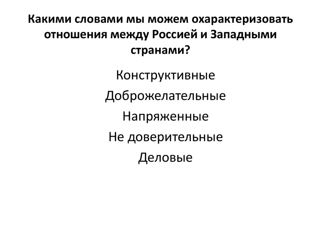 Какими словами мы можем охарактеризоватьотношения между Россией и Западными