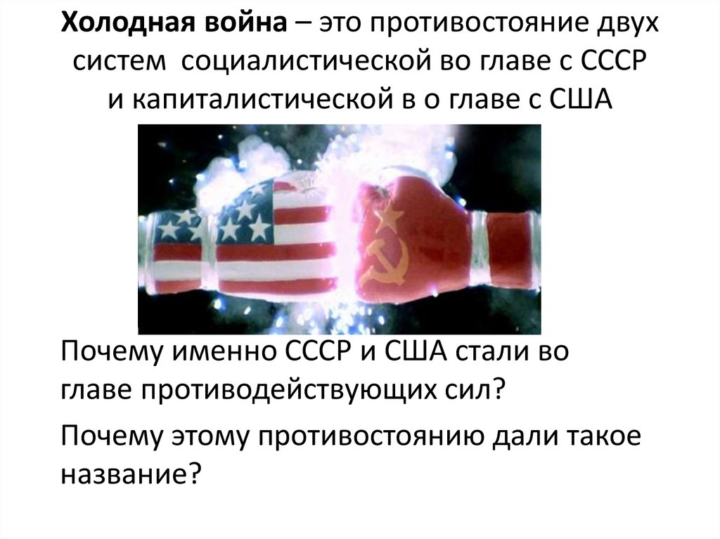 Холодная война – это противостояние двухсистем социалистической во главе с СССР