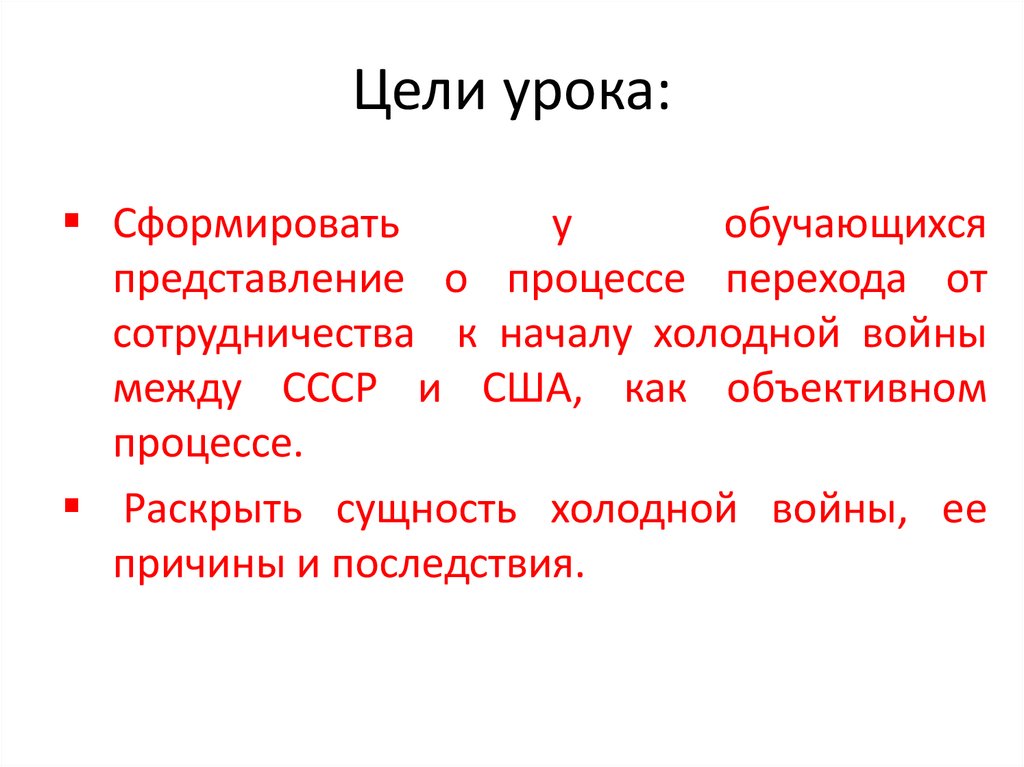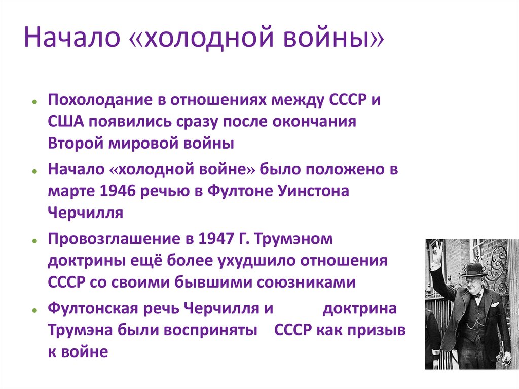 Начало «холодной войны»Похолодание в отношениях между СССР и