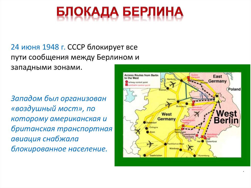 24 июня 1948 г. СССР блокирует всепути сообщения между Берлином и