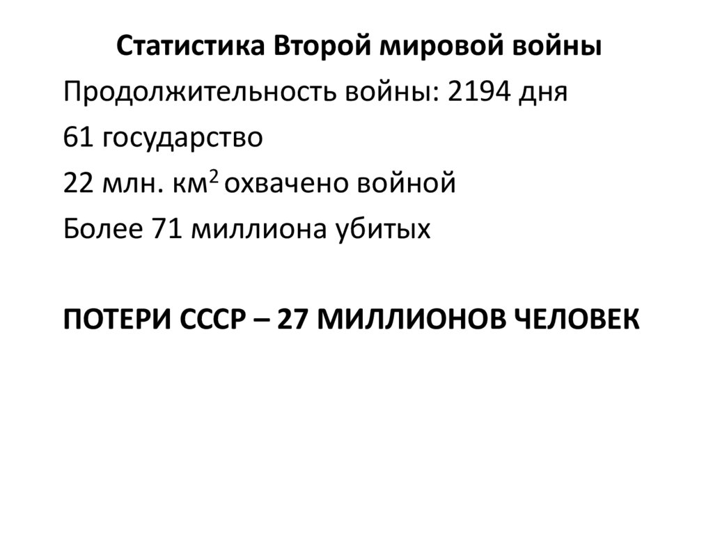 Статистика Второй мировой войныПродолжительность войны: 2194 дня