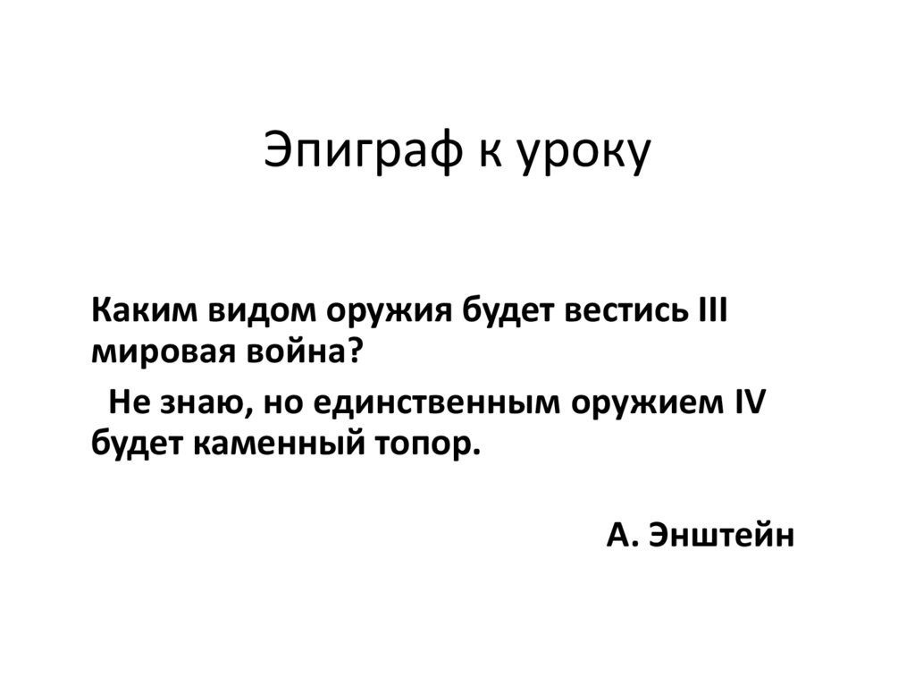 Эпиграф к урокуКаким видом оружия будет вестись III