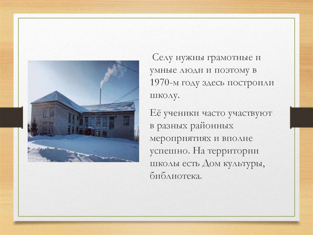 Селу нужны грамотные иумные люди и поэтому в