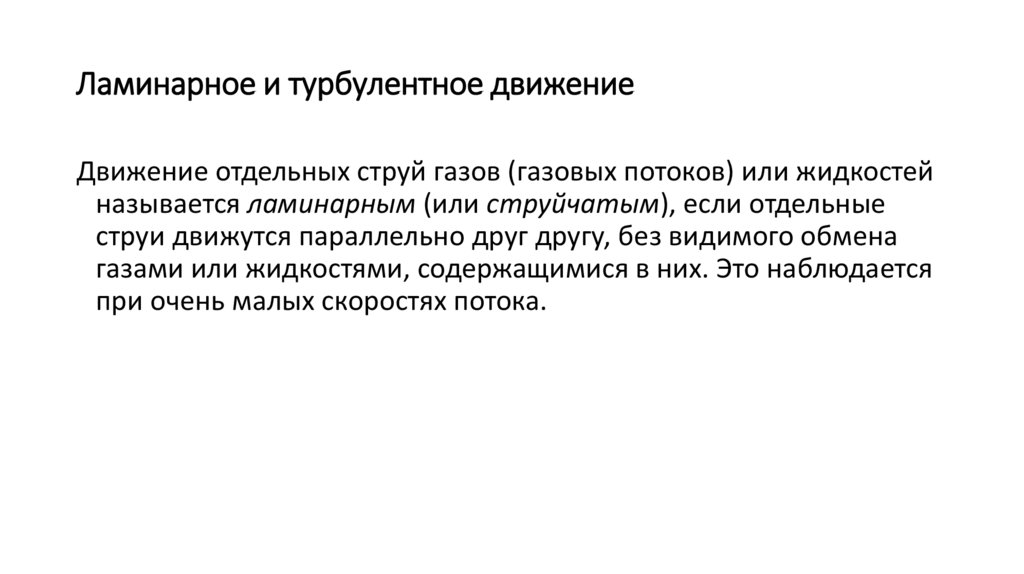 Ламинарное и турбулентное движениеДвижение отдельных струй газов (газовых потоков) или жидкостей