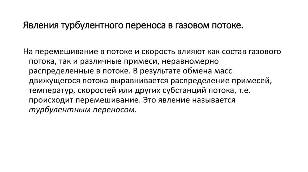 Явления турбулентного переноса в газовом потоке.На перемешивание в потоке и скорость влияют как состав газового