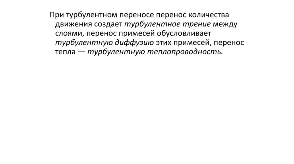 При турбулентном переносе перенос количествадвижения создает турбулентное трение между