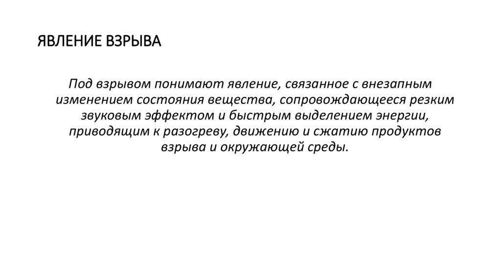 ЯВЛЕНИЕ ВЗРЫВАПод взрывом понимают явление, связанное с внезапным