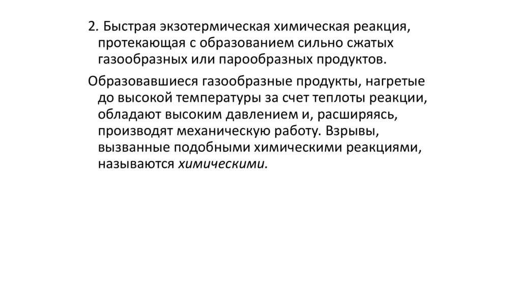 2. Быстрая экзотермическая химическая реакция,протекающая с образованием сильно сжатых