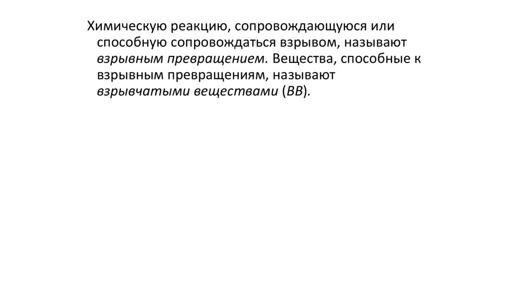 Химическую реакцию, сопровождающуюся илиспособную сопровождаться взрывом, называют