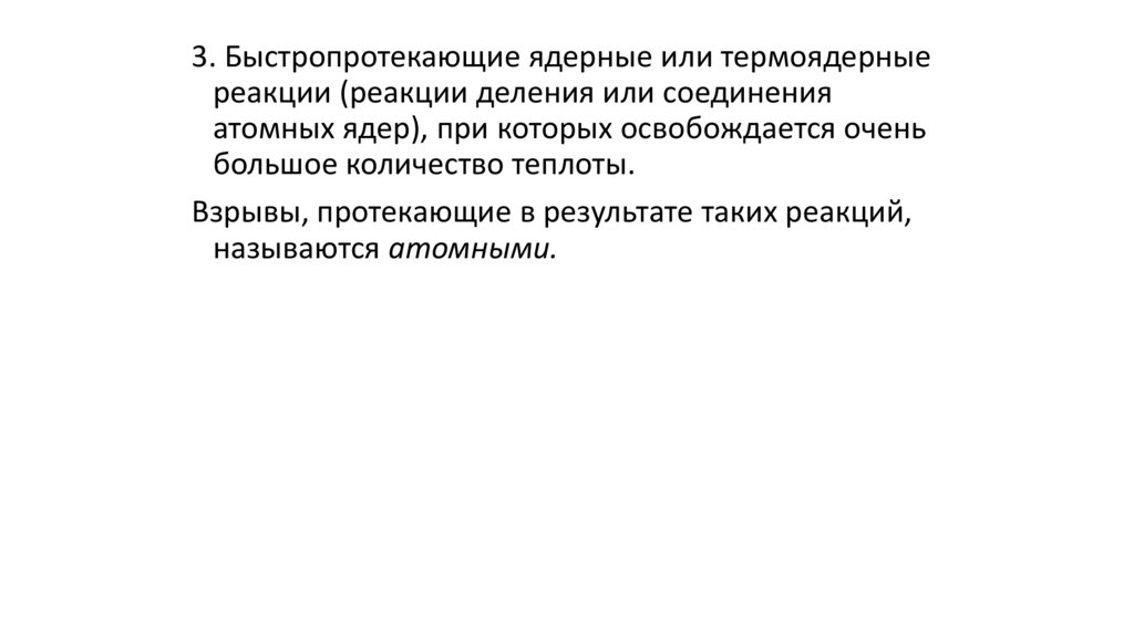 3. Быстропротекающие ядерные или термоядерныереакции (реакции деления или соединения