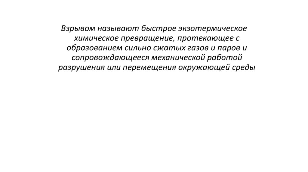 Взрывом называют быстрое экзотермическоехимическое превращение, протекающее с