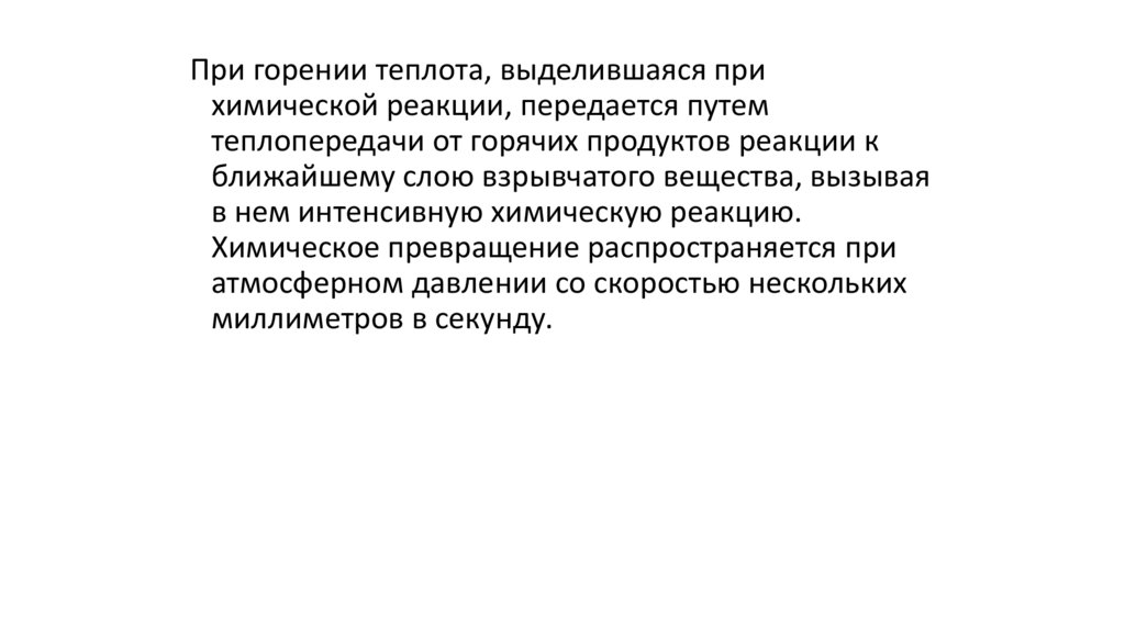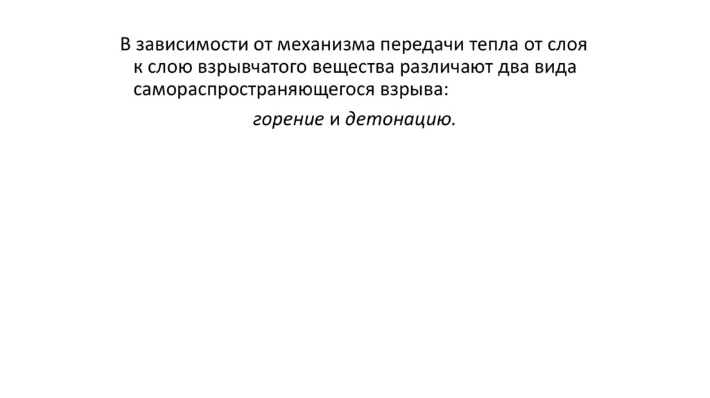 В зависимости от механизма передачи тепла от слояк слою взрывчатого вещества различают два вида