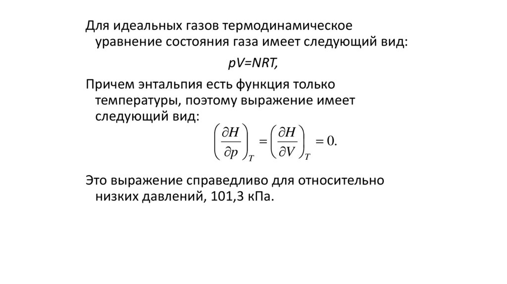 Для идеальных газов термодинамическоеуравнение состояния газа имеет следующий вид: