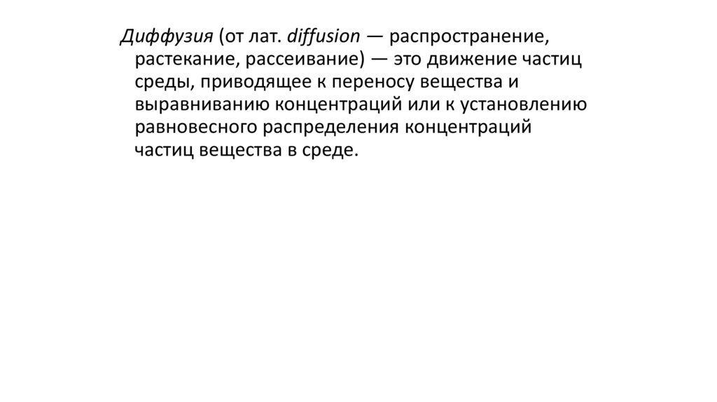 Диффузия (от лат. diffusion — распространение,растекание, рассеивание) — это движение частиц