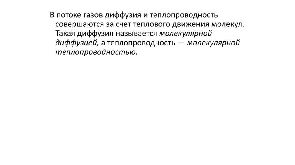 В потоке газов диффузия и теплопроводностьсовершаются зa счет теплового движения молекул.