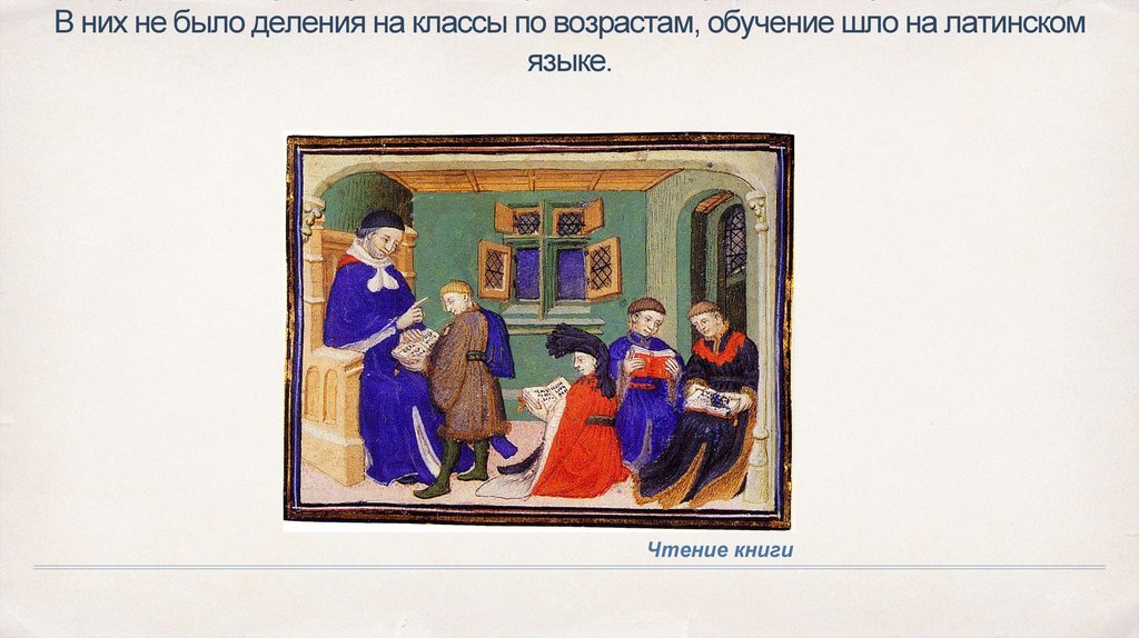В них не было деления на классы по возрастам, обучение шло на латинскомязыке.